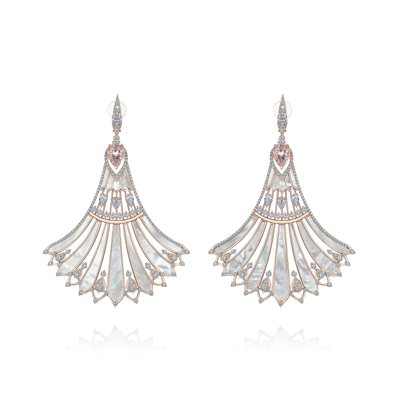 Earrings with morganites, mother of pearl and diamonds