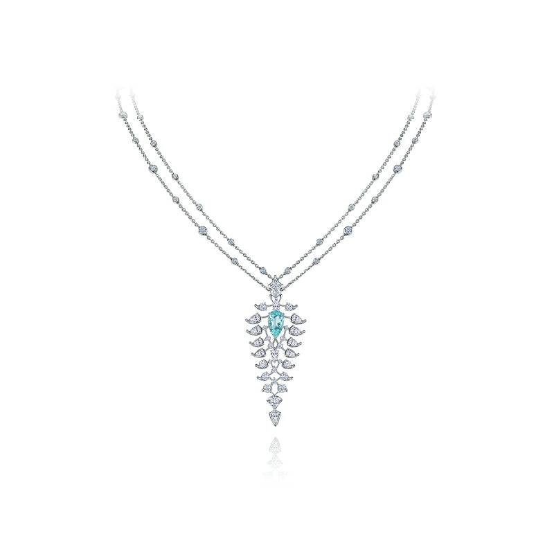 Tourmaline Paraiba cut pear. Pear-cut and round-cut diamonds.